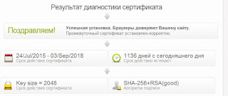 Правда в панели хостера присланной цепочкой воспользоваться не получилось, т.к. панель говорила что она не верна (CSR запрос сертификат я также оформлял в панели, вообще это первое с чего нужно начать, генерация CSR - но я думаю вы это и так знаете). Верную цепочку я нашел в вопросах и ответах вот здесь: Цепочка сертификатов. Где скачать? ... Причем там есть как SHA-1, так и SHA-2 цепочки.